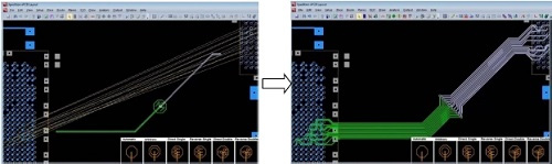 PADS Professional包含交互式布线、高速布线、高密度布线功能,可轻松应对当今电子设计的各种挑战,诸如高速差分信号布线、蛇形网络布线、圆弧布线等。