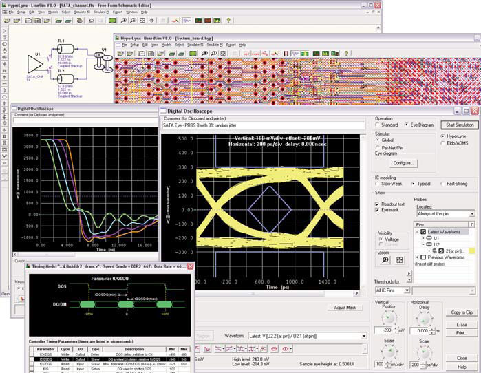 Hyperlynx SI包括前仿真LineSim、后仿真BoardSim分析模块。解决潜在的信号完整性(SI)问题、时序(Timing),串扰(Crosstalk)、EMC问题,分析信号的频率可以从0Hz到数十千兆Hz。提供有丰富的Design Kit,包括PCIE, SATA,SAS,RapidI/O等SERDES接口,DDR,DDR2,DDR3,PCI‐X等高速同步通讯接口。
